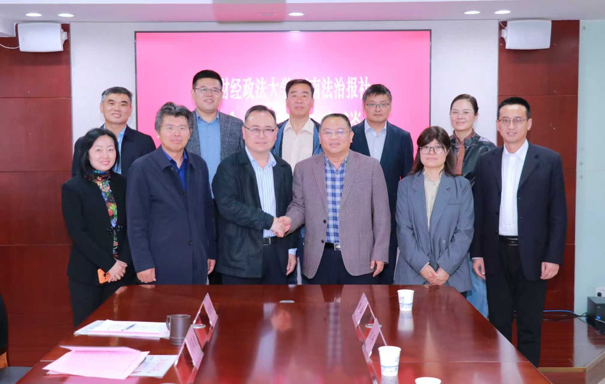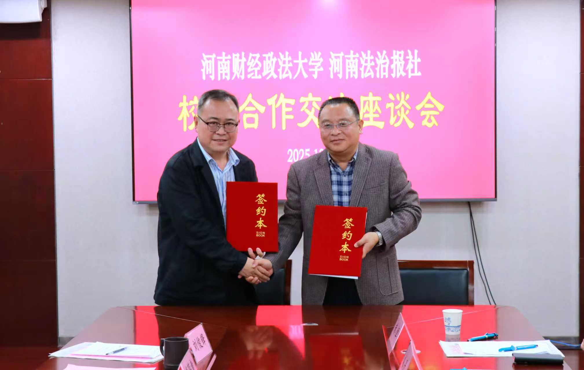 10月15日,河南财经政法大学与河南法治报社校媒合作签约仪式在河南法治报社成功举行。河南法治报社社长、总编辑童浩麟,河南财经政法大学伟德bv1946官网执行部长刘英杰分别代表双方签约,河南法治报社副总编辑李葆童,人文艺术副部长任丙超、传媒学院副院长刘丹及相关领导老师出席。双方旨在通过深度协作,整合学术理论与媒体实践资源,推动法治与文化深度融合,共筑法治传播新高地。