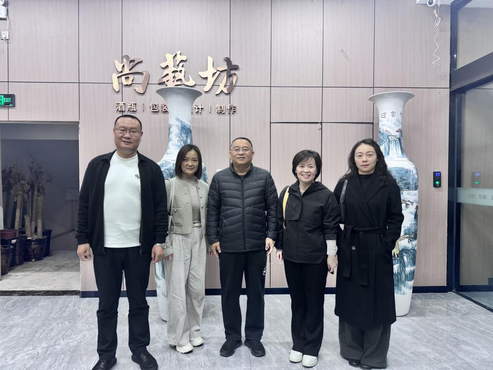 在尚艺坊负责人的陪同下,刘英杰一行参观了企业的设计研发中心与生产实践基地,详细了解了企业在包装设计、定制化服务及市场拓展方面的成果与创新举措。双方围绕人才共育、实习基地建设、项目合作等方面展开了深入交流。
